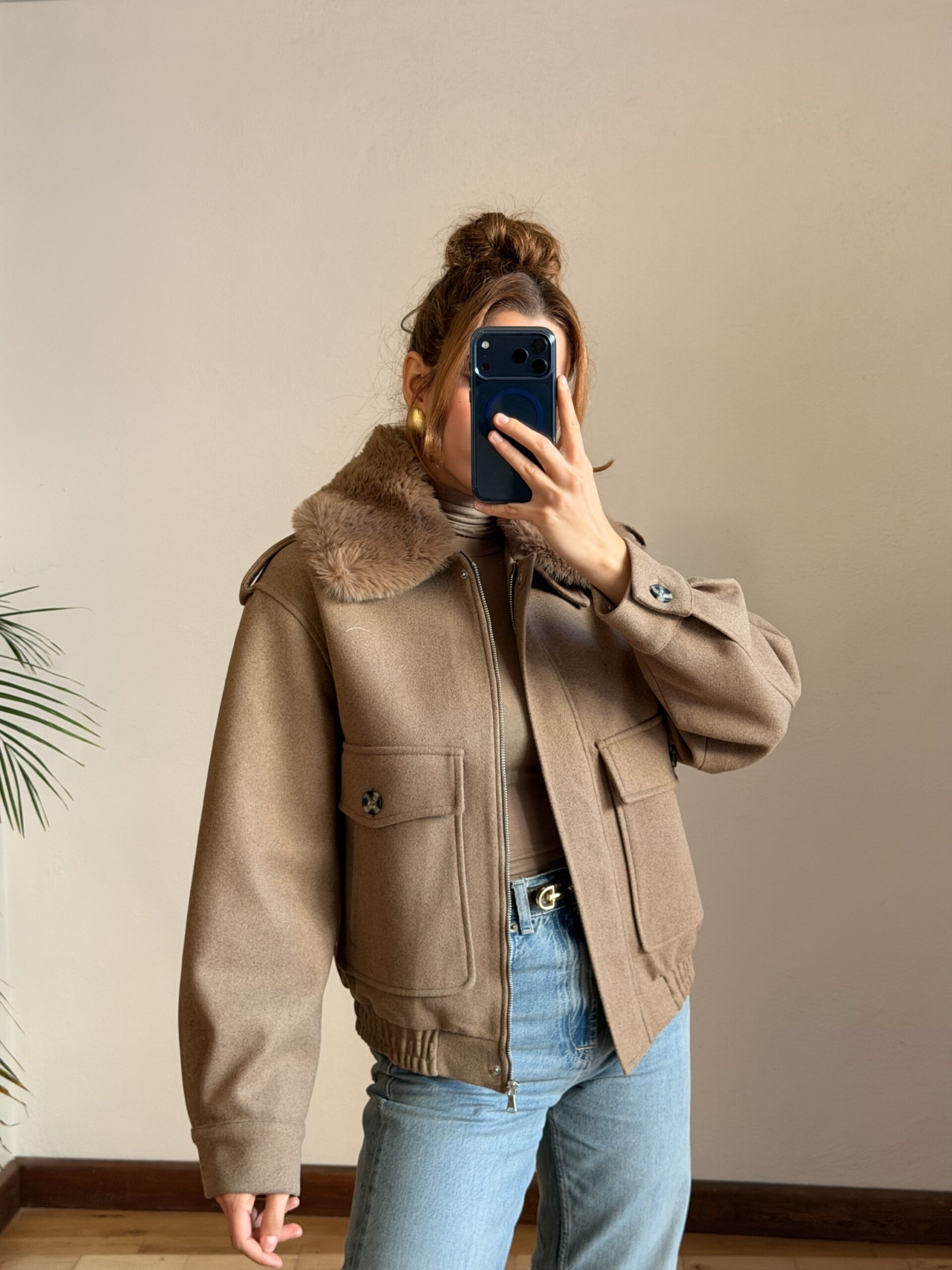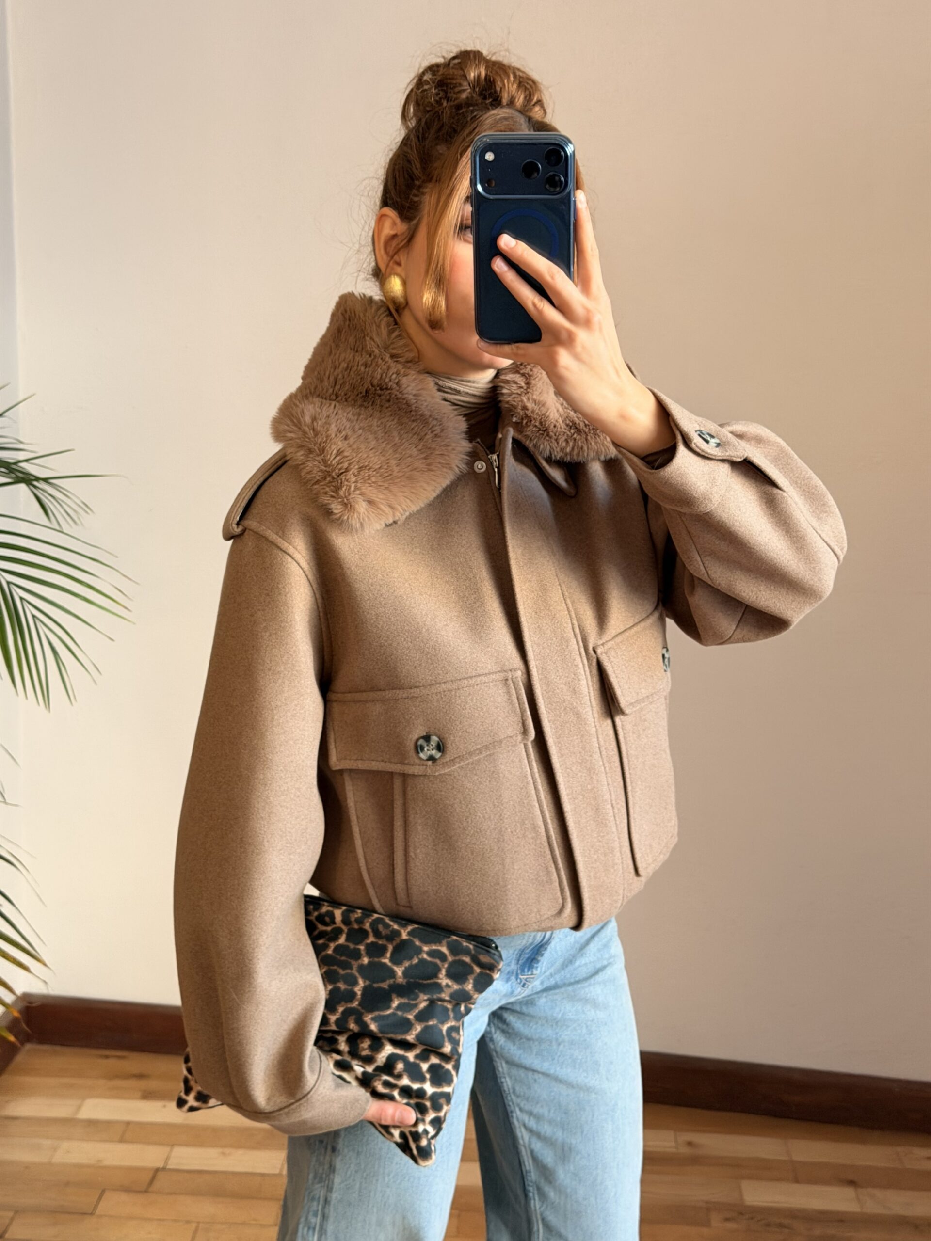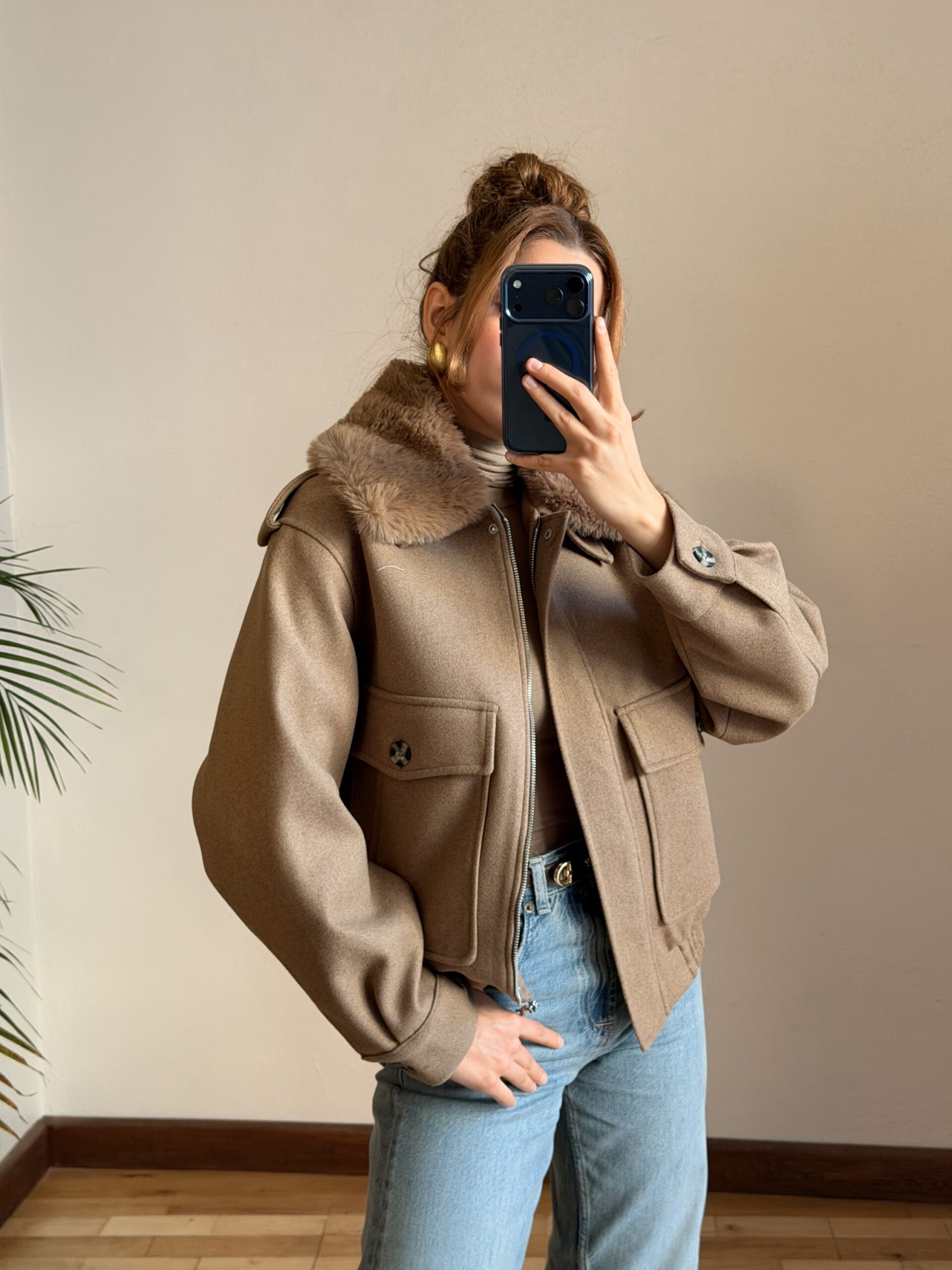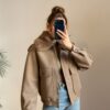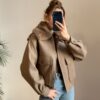 Yakası Kürklü Camel Kaşe Ceket